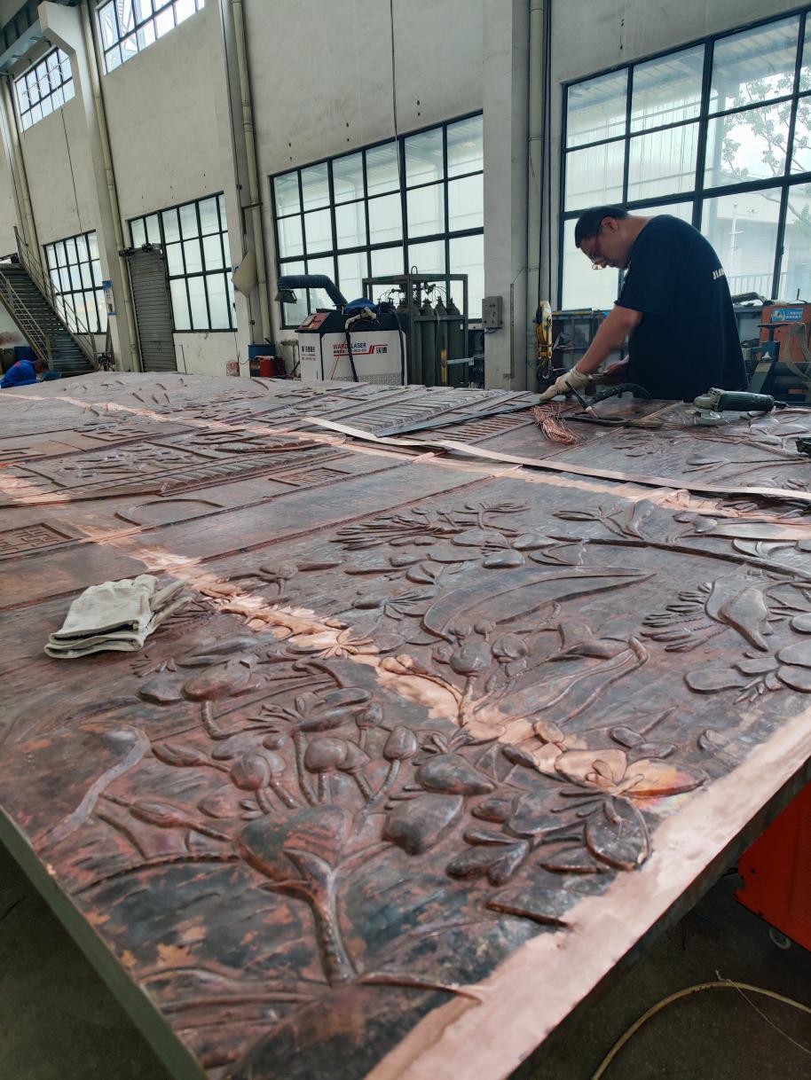 12月26日,龍龍高鐵龍巖至武平段正式開(kāi)通運(yùn)營(yíng),由銅陵銅官府文化創(chuàng)意股份公司設(shè)計(jì)并制作的大型銅浮雕在上杭高鐵站正式交付使用。該項(xiàng)目在地方政府支持下,公司全體員工克服了雙曲面、體積大、畫(huà)面復(fù)雜、安裝難度高等困難,歷時(shí)3個(gè)月順利完工。