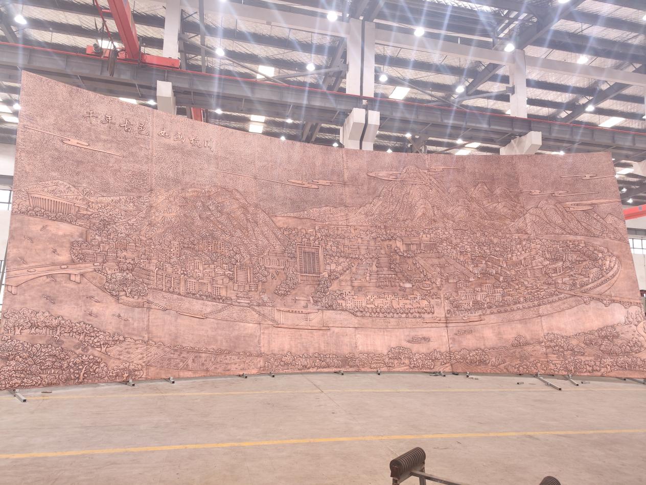 站房西側(cè)銅雕《千年古邑如畫(huà)杭川》(圖片來(lái)自中國(guó)鐵路)